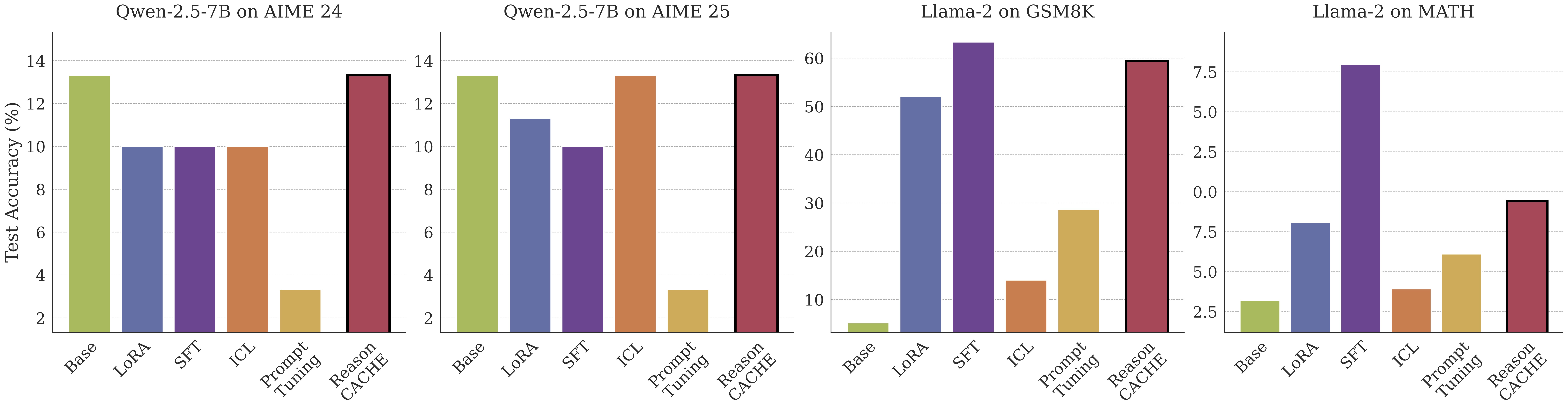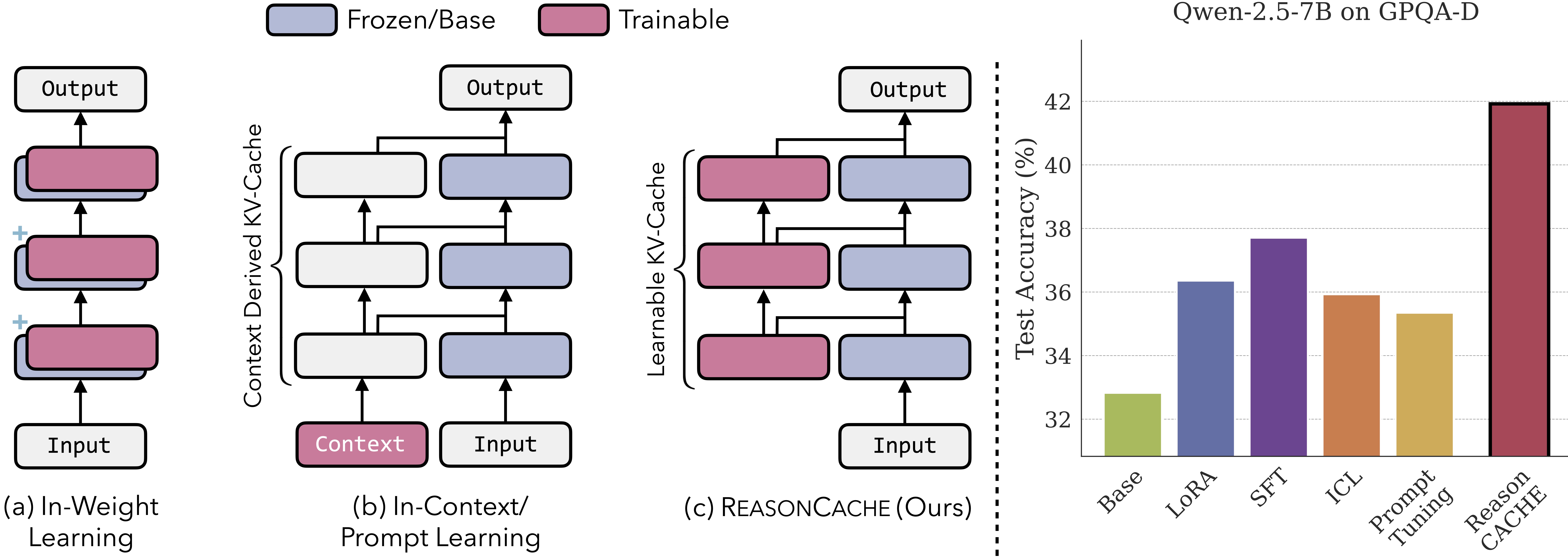 tokens at inference time. (Right) Test accuracy (%) on GPQA-Diamond where ReasonCACHE outperforms both in-context